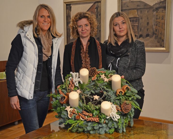 „Advent, Advent ein Lichtlein brennt…“ – Bereits zum sechsten Mal spendierte die Firma Bellaflora einen Adventkranz für das städtische Amt für Jugendwohlfahrt. Mag.a MSc Gabriele Herlitschka (Leiterin Amt für Jugendwohlfahrt) freute sich über den in Naturfarben gehaltenen Tischschmuck, den ihr die Floristinnen Anka Vukoja und Christine Nowak, übergaben. Der Kranz wird in den Büroräumlichkeiten des Jugendamtes aufgestellt.
