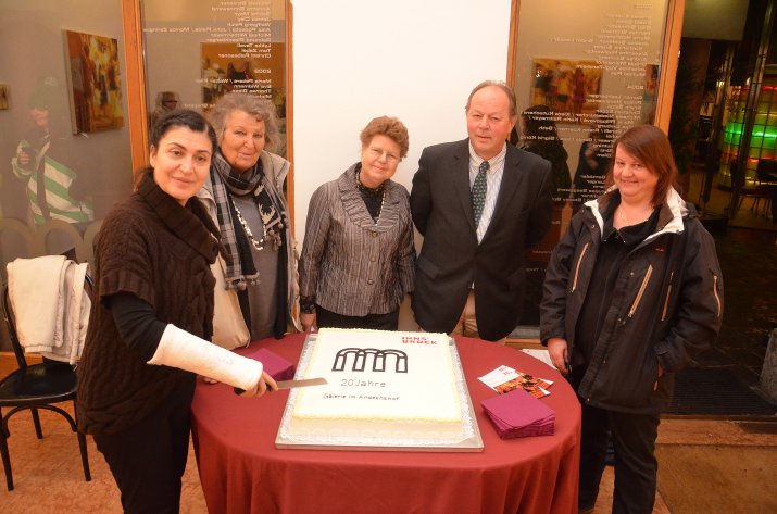 Zur Feier des Tages wurde eine große Torte angeschnitten und Kulturstadträtin Univ.-Prof. Dr. Patrizia Moser begrüßte die vielen Gäste, die anlässlich der Jubiläumsausstellung gekommen waren. „20 Jahre Andechsgalerie bedeuten, dass dies eine gute, solide und beständige Sache ist. Ich freue mich, heute unter den Gästen so viele Künstlerinnen und Künstler zu sehen, die die Galerie über die Jahre begleitetet haben“, so die Stadträtin: „Dass die Galerie im Andechshof sehr erfolgreich ist, beweist die Tatsache, dass sie schon für die nächsten zwei Jahre im Voraus ausgebucht ist.“ Die Kulturstadträtin betonte außerdem das hohe Niveau der Ausstellungen und die gute Betreuung der Künstler, die dem städtischen Kulturamt unter der Leitung von Horst Burmann zu verdanken seien. Bisher fanden in der Galerie im Andechshof über 237 Ausstellungen mit 260 Künstlerinnen und Künstlern statt.