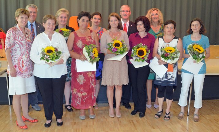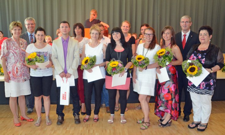 Im Festsaal der Volksschule Reichenau kamen am 18. Juni 50 Lehrkräfte zusammen, die für ihre Verdienste ausgezeichnet wurden. In Anwesenheit von Bezirksschulinspektor Wolfgang Haslwanter, Amtsdirektor des Bezirksschulrates Innsbruck Stadt Mag. Ferdinand Neu, Dr. Karin Zangerl (Amtsvorständin Familie, Bildung und Gesellschaft), Mag. Christian Biendl (Referent Bezirksschulangelegenheiten) sowie zahlreichen DirektorInnen überreichte Bürgermeisterin Mag.a Christine Oppitz-Plörer den verdienten PädagogInnen ein Dekret.