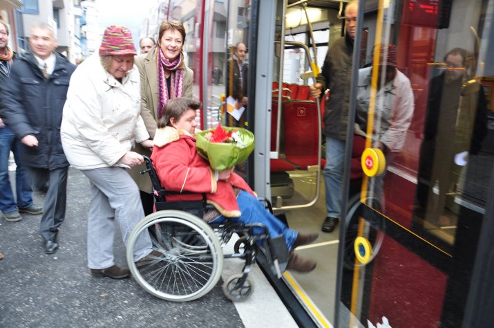 „Die Länge des Kaps ist so bemessen, dass die beiden vorderen Straßenbahntüren erreicht werden können“, erläuterte Dr. Walter Zimmeter, Leiter des Tiefbauamtes: „Beim ersten Einstieg in der Nähe des Fahrers können sehbehinderte Menschen mittels taktiler Leiteinrichtungen einsteigen. Bei der zweiten Türe wird der behindertengerechte Zugang für Personen mit eingeschränkter Mobilität, Rollstuhl oder Kinderwagen ermöglicht.“