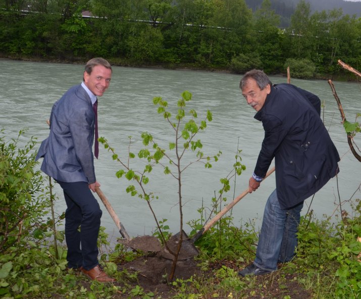 Aktuell wird der Bewuchspflege von Uferstreifen des Inns besonderes Augenmerk geschenkt. Insgesamt steht dabei neben der naturnahen Gestaltung der Uferböschungen ebenso auch immer der Hochwasserschutz im Vordergrund. Am 24. Mai nahmen Innsbrucks Forstwirtschaftsreferent Vizebürgermeister Christoph Kaufmann und Grünraumstadtrat Mag. Gerhard Fritz gemeinsam mit Ing. Gerhard Dendl (Inn-Sill-Koordinator) die bereits erfolgten Arbeiten an der Nordseite des Sieglanger Steges in Augenschein. Außerdem legten die Stadtpolitiker selbst Hand an und pflanzten eine Linde.
