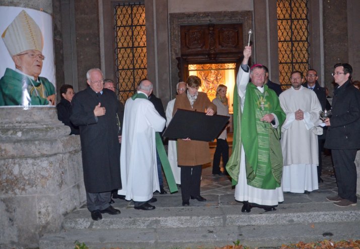 Musikalisch umrahmt vom Bläserensemble Amras wurde im Anschluss an den Gottesdienst die Gedenktafel übergeben. Landtagspräsident van Staa bedankte sich bei Initiator Monsignore Hippler und beim Gemeinderat der Stadt Innsbruck für die Entscheidung der Platzbenennung: „Mein Dank gilt der Stadt Innsbruck für diese Würdigung unseres unvergessenen Bischofs Reinhold Stecher.“