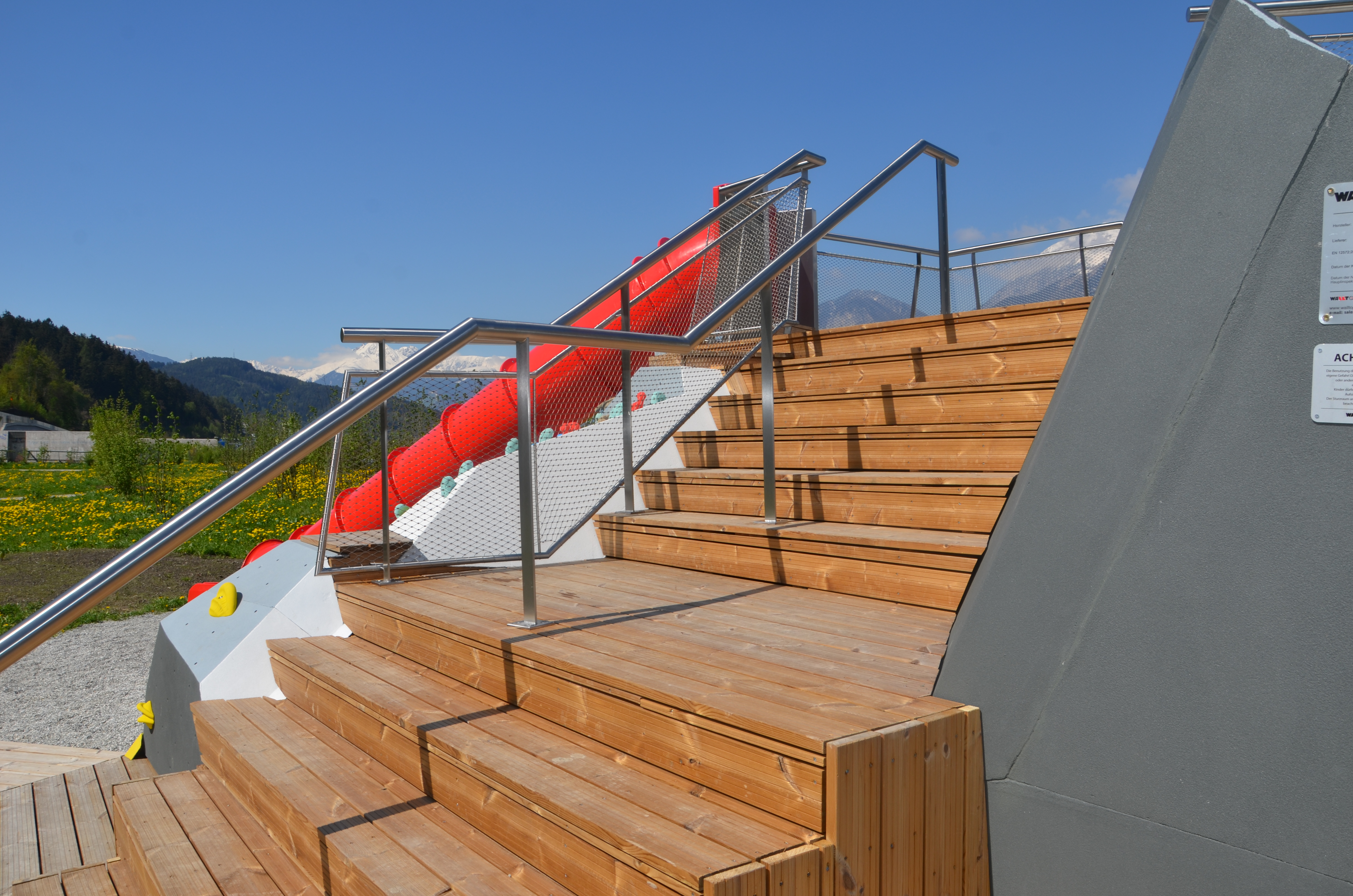 Die Einhausung der Autobahn A12 in Amras trägt nicht nur positiv zur Lärmbewältigung bei, sie entwickelt sich immer mehr zur grünen Oase für jede Altersklasse. Nach der Fertigstellung des Spielplatzes für Kleinkinder 2014, konnte nun auch die Boulderanlage eröffnet werden. Diese überzeugt durch eine ganz besondere Optik.