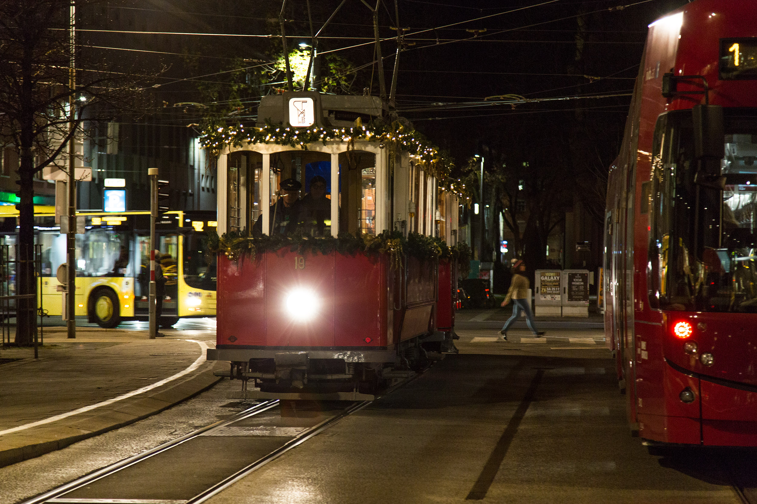 Auch heuer werden der Triebwagen 19 und Beiwagen 147 (beide Baujahr 1907), die von den Tiroler Museumsbahnen in liebevoller Kleinarbeit in Schuss gehalten werden, als Innsbrucker Christkindlbahn auf den Gleisen der Innsbrucker Verkehrsbetriebe unterwegs sein. Stimmungsvoll dekoriert, lädt sie von 01. bis 23. Dezember, jeweils Freitag und Samstag zwischen 15:30 und 19:00 Uhr, zu einer ganz besonderen kostenlosen Fahrt durch unsere vorweihnachtliche Stadt ein.