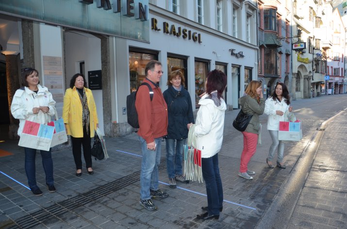 Anlässlich des Equal Pay Days fand auch heuer wieder eine Aktion in der Maria-Theresien-Straße statt: Frauenreferentin Vizebürgermeisterin Mag.a Sonja Pitscheider und die Gemeinderätinnen Marcela Duftner, Kathrin Heis, Dr. Renate Krammer-Stark, Elfriede Moser, Sophia Reisecker und Mag.a Uschi Schwarzl verteilten gemeinsam mit Uschi Klee (Referentin Frauen, Familien und Senioren) sowie den städtischen MitarbeiterInnen Slavica Rajic, Daniel Burgstaller und Ivana Andric Taschen mit dem Aufdruck „Wir machen halbe/halbe – Zeit für mich, uns, andere(s)“ an die PassantInnen, um darauf aufmerksam zu machen, dass es auch anders geht.