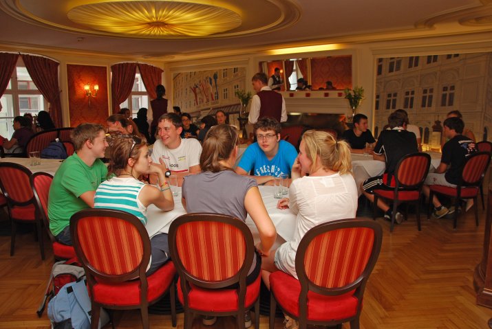 Eine bunte Gruppe Jugendlicher im Alter von 16 bis 17 Jahren war es, die sich am 12. Juli im Innsbrucker Café Sacher nahe der Hofburg mit Kulturstadträtin Univ.-Prof. Dr. Patrizia Moser zusammenfand. Vierzehn SchülerInnen aus Jerusalem, jeweils sieben palästinensischer und israelischer Herkunft trafen auf je sieben Gleichaltrige aus Tirol und Südtirol und besuchten im Rahmen ihres rund einwöchigen Tirol-Aufenthaltes die Landeshauptstadt Innsbruck. Ziel des internationalen Treffens war der kulturelle Austausch und die Völkerverständigung.