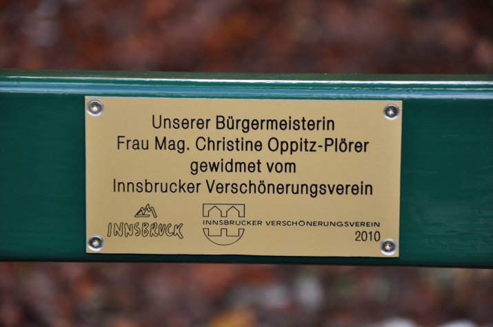 Der Innsbrucker Verschönerungsverein widmete der Bürgermeisterin eine Bank.