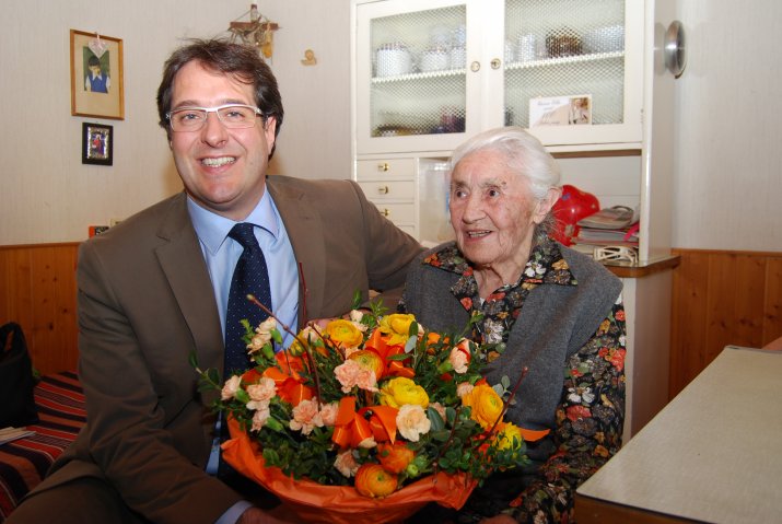 Am 9. März feierte Elisabeth Kiem ihren 100. Geburtstag. Zu diesem Anlass besuchte Vizebürgermeister Franz Xaver Gruber die rüstige und mobile Dame am 23. März in ihrer Wohnung im Pradler Saggen und überbrachte im Namen der Stadt Innsbruck herzliche Geburtstagsglückwünsche und einen frühlingshaften Blumenstrauß.