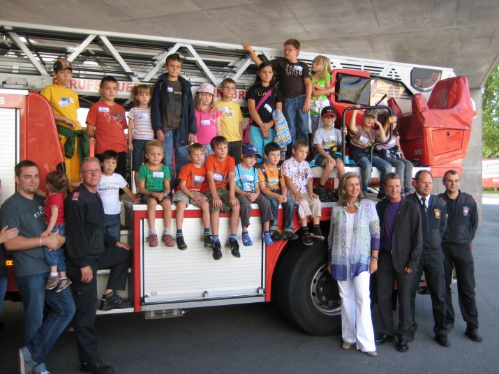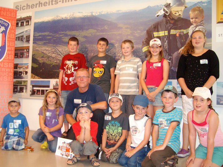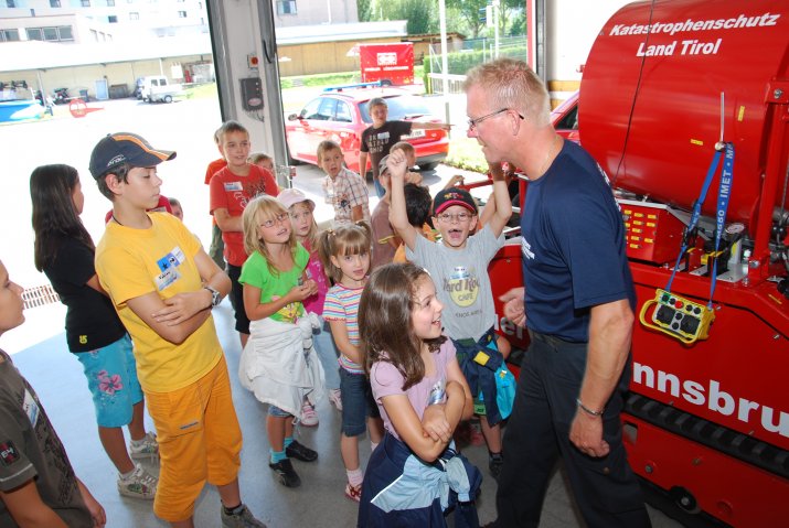 20 Kinder besuchten am 10. August im Rahmen des Sommerferienzuges die Berufsfeuerwehr Innsbruck. Begleitet wurden die jungen Besucher von Branddirektor Mag. Erwin Reichel sowie von Vizebürgermeister Christoph Kaufmann und Landesrätin Patrizia Zoller-Frischauf.