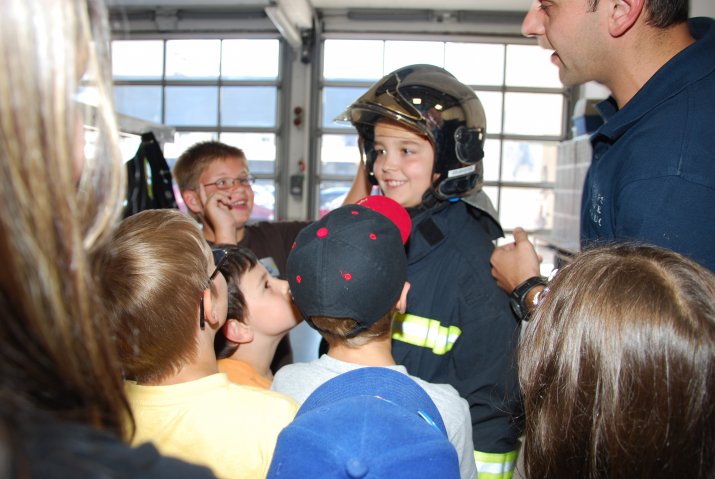 Auf Feuerwehrautos kraxeln, Einsatzbekleidung anprobieren, ein echtes Feuer bekämpfen und dabei Wissenswertes über die Feuerwehr erfahren.