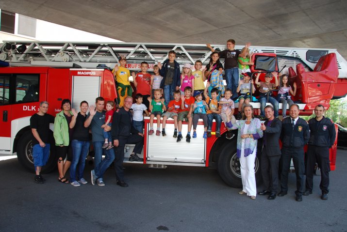 Das Ferienzugprogramm ist vielfältig, die Kinder können sich sportlich, kreativ oder auch als kleine Wissenschaftler betätigen. „Der Besuch von Blaulichtorganisationen ist sehr beliebt“, weiß Birgit Hofbauer vom städtischen Referat für Kinder und Jugendförderung. Daher war natürlich auch der Besuch bei der Berufsfeuerwehr am 10. August sehr gefragt. Feuerwehrmann Bernhard Egger erzählte den Ferienzuggästen anschaulich alles rund um die Feuerwehr und das Verhalten im Notfall. Die Kinder erfuhren dabei, dass die Feuerwehr nicht nur kommt, wenn es brennt, sondern auch bei Autounfällen, Hochwasser, etc. Feuerwehrautos wurden besichtigt und sogar „hineinkraxeln“ war erlaubt. Auch einen echten Alarm erlebten die jungen Gäste und staunten, wie flink die Berufsfeuerwehrmänner mit dem Einsatzfahrzeug davonbrausten. Höhepunkt des zweistündigen Programms waren aber eindeutig die Löschübungen, bei denen es galt, zielgenau zu spritzen und mit einem Feuerlöscher echte Flammen zu bekämpfen.
