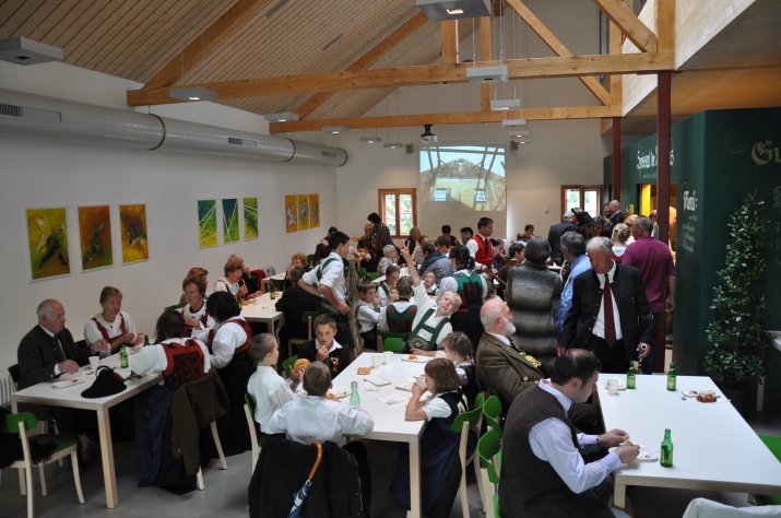 Die Segnung des neuen Hauses sprachen der katholische Pfarrer Patrick Busskamp und der evangelische Geistliche Dr. Rainer Dahnelt. Anschließend luden die Amraser Vereine, etwa der Trachtenverein, der Kirchenchor, die Jungbauern oder die Amraser Matschgerer in ihren Räumlichkeiten zum Tag der offenen Tür mit Brauchtumsvorstellungen und viel Musik.