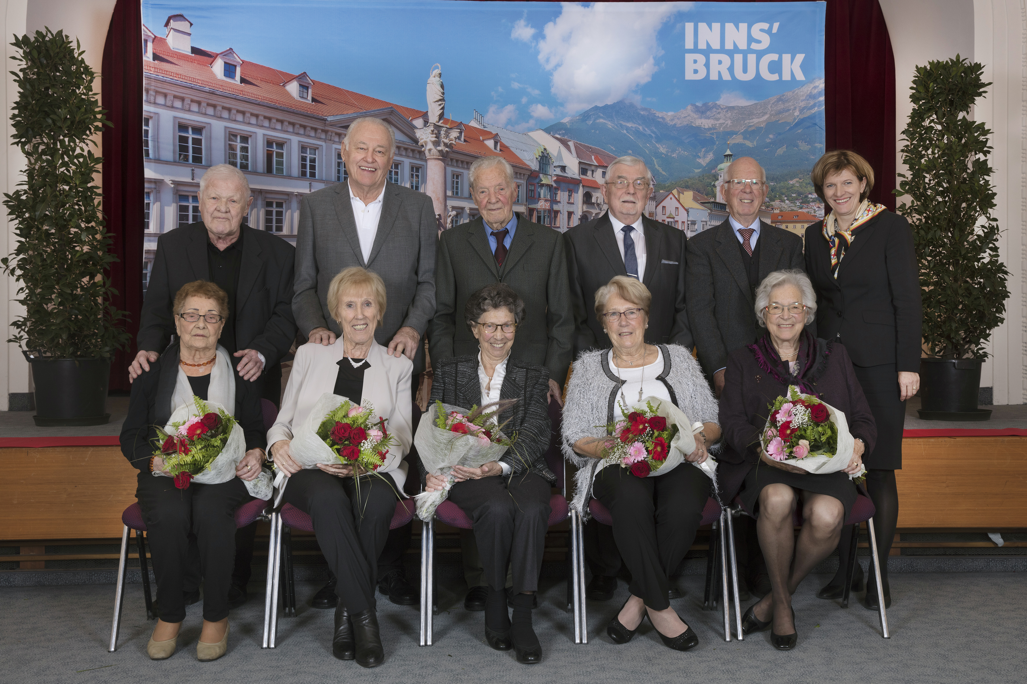 Mehrmals im Jahr würdigt die Stadt Innsbruck ganz besondere Ehepaare – und zwar jene, die bereits 50 bzw. 60 Jahre miteinander verheiratet sind und damit ihre Goldene bzw. Diamantene Hochzeit feiern. So geschehen auch vor Kurzem in den Ursulinensälen: Zehn Diamantene und 20 Goldene Paare trafen sich anlässlich ihrer Jubiläen. Und dem nicht genug: Ein Paar geht bereits seit 65 Jahren als Ehepaar gemeinsam durchs Leben und feierte sein Eisernes Jubiläum.