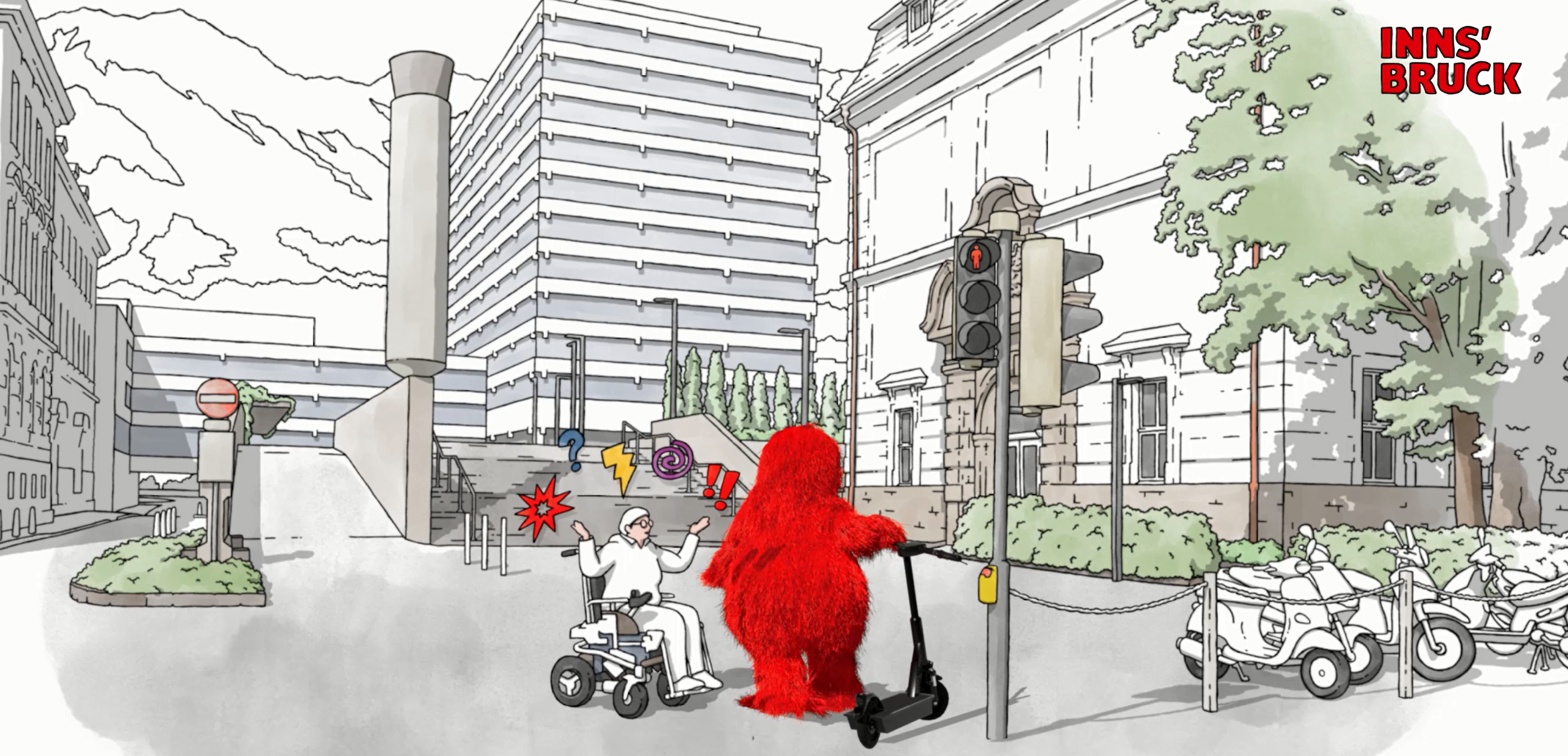 „Vielen Menschen, die nicht von Behinderungen betroffen sind, ist nicht klar, dass kleine Handlungen große Auswirkungen auf Menschen mit Behinderungen haben können. Sie machen das meist ohne böse Absicht, da ihnen nicht bewusst ist, welche Folgen ein unbedacht abgestellter E-Scooter oder das Parken auf dem Blindenleitsystem haben können. Deswegen freut es mich umso mehr, dass auf Initiative von Stadträtin Mayr und dem Behindertenbeirat der Landeshauptstadt Innsbruck, in enger Zusammenarbeit mit der Geschäftsstelle Kommunikation und Medien, diese innovative und humorvolle Bewusstseinskampagne entwickelt wurde. Nicht mit erhobenem Zeigefinger, sondern mit Witz werden Problemzonen aufgezeigt. Das führt hoffentlich zu einem sensibleren und achtsameren Umgang miteinander“, betont die Vorsitzende des Behindertenbeirates der Stadt Innsbruck Dr.in Mag.a Elisabeth Rieder. Seit 2003 gibt es in der Stadt Innsbruck einen Behindertenbeirat. Dieser versteht sich als weisungsfreies beratendes Gremium für Stadtregierung, Gemeinderat und Verwaltung sowie als Interessensvertretung für Menschen mit Behinderungen. Insgesamt sind 15 in Innsbruck aktive Behindertenorganisationen im Beirat vertreten. Ziele sind die Schaffung von Rahmenbedingungen für gleichberechtigte Teilhabe am Leben in der Stadt sowie der Abbau von Diskriminierungen in allen Bereichen des alltäglichen Lebens. MF