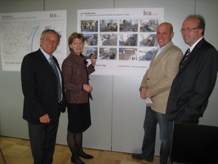 Vom erfolgreichen österreichweit erstmaligen Einsatz des grabenlosen Rohrvortriebes („Maulwurf“) zur Umsetzung der Kanaloffensive 2020 überzeugten sich bei einer Besichtigung vor Ort Mitglieder des Innsbrucker Stadtsenates mit Bürgermeisterin Mag. Christine Oppitz-Plörer an der Spitze, IKB-Vorstandsvorsitzender DI Harald Schneider und Vertreter der Österreichischen Vereinigung für grabenloses Bauen und Instandhalten von Leitungen (ÖGL). Damit wurde laut Oppitz-Plörer nicht nur ein wichtiger Schritt für eine ökologisch hochwertige Abwasserentsorgung umgesetzt: „Die IKB übernimmt seit Jahren ressourcenschonende Verantwortung und trägt auch damit in höchstem Maße zur hohen Lebensqualität in Innsbruck bei.“
