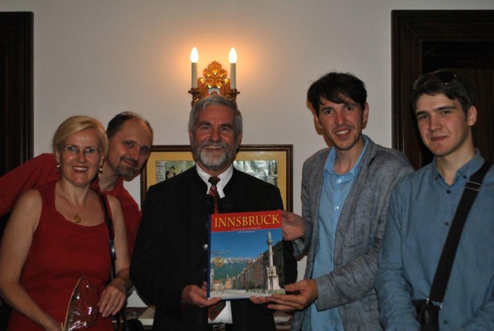 Im Zeichen dieser Städtepartnerschaft überreichten die Gäste aus Innsbruck im Namen von Bürgermeisterin Mag.a Christine Oppitz-Plörer ein Buch über die Stadt Innsbruck sowie ein Tiroler Schnapsl.