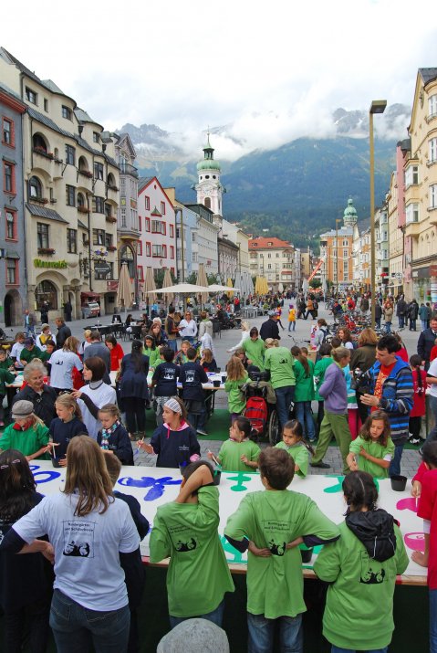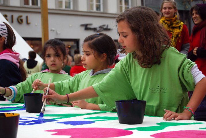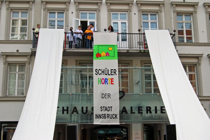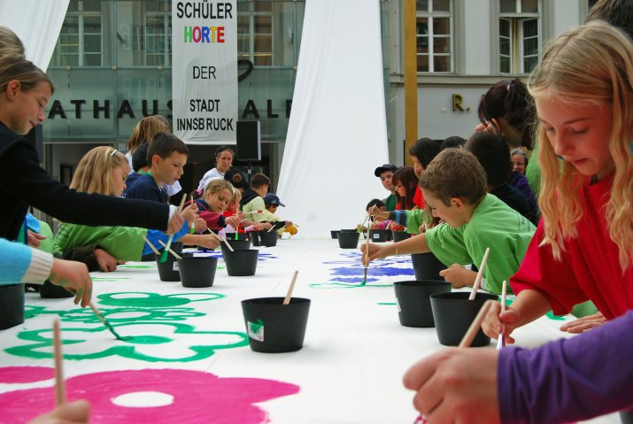 In Innsbruck gibt es neben 28 städtischen Kindergärten auch 10 städtische Schülerhorte. Eine Vielzahl privater Kinderbetreuungseinrichtungen ergänzt das öffentliche Angebot und wird von der Stadt Innsbruck jährlich mit 1,3 Millionen Euro unterstützt. Neben der Hausaufgabenbetreuung bieten die Schülerhorte auch ein abwechslungsreiches Freizeitprogramm. Um die Kreativität der Kinder zu fördern, bemalen die Kinder an langen Tischen 20 Meter lange Stoffbahnen, die am Rathausbalkon angebracht werden. Das Projekt läuft unter dem Motto „Kinder bringen Farbe in die Stadt“.