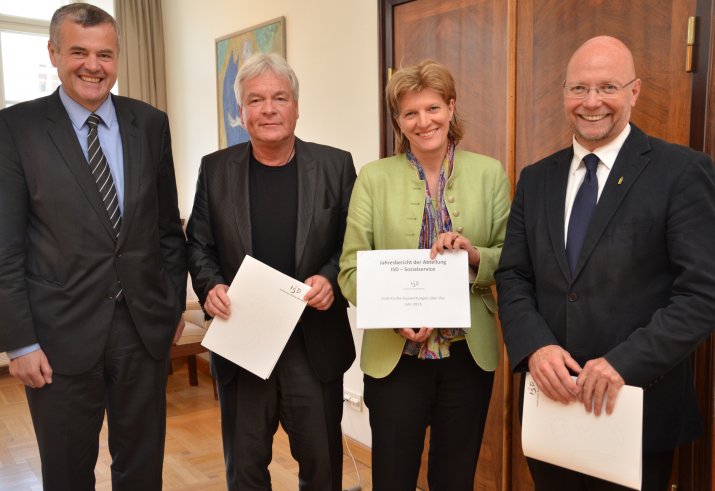 Im Rahmen des Pressegesprächs präsentierten Bürgermeisterin Mag.a Christine Oppitz-Plörer, Sozialstadtrat Ernst Pechlaner, ISD-Geschäftsführer Dr. Hubert Innerebner und Robert Senn eine Bilanz des Sozialservice.