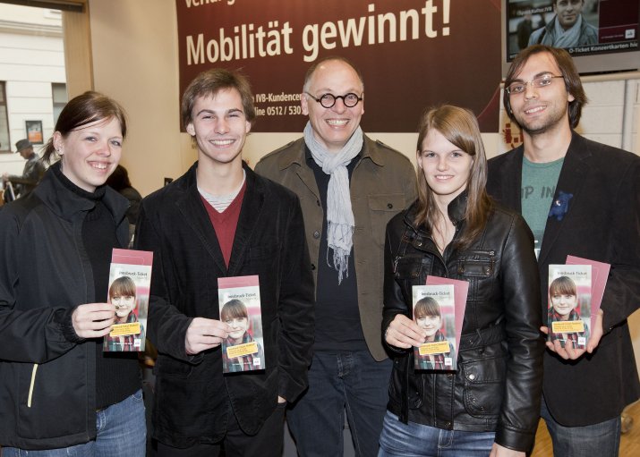 Anlass war die Gewinnübergabe zu einem Gewinnspiel der IVB per e-mail unter den vielen Studierenden aus ganz Tirol. Dabei übergab nun Baltes mehrere „Innsbruck Tickets Student“ an die GewinnerInnen.