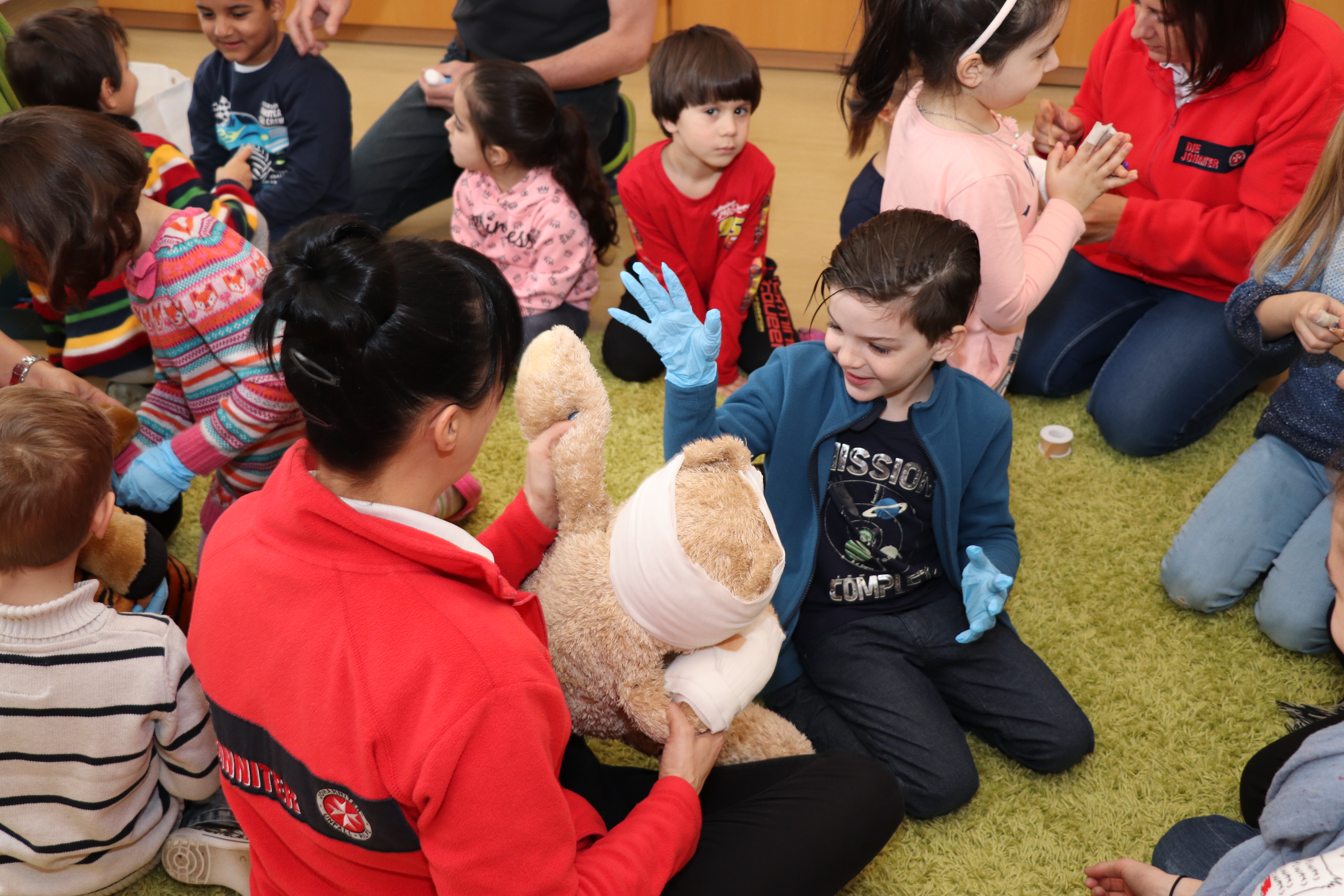 In den 40 Erste-Hilfe-Workshops lernen die Kindergartenkinder im Alter von drei bis sechs Jahren spielerisch die Grundbegriffe der Erste Hilfe.