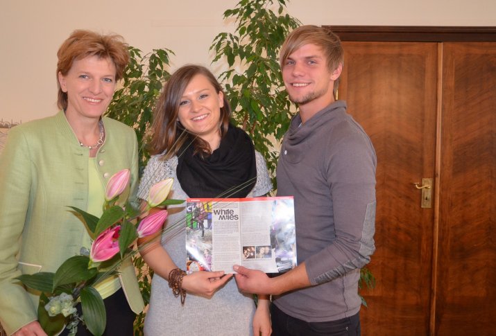 Die Stadt Innsbruck wird dabei von den „White Miles“ (Medina Rekic und Hansjörg Loferer, beide 21 Jahre) vertreten. Die beiden Tiroler stehen seit November 2011 gemeinsam auf der Bühne: Medina an der Gitarre und Hansjörg am Schlagzeug. Auf ihrer Facebook-Seite beschreiben die beiden ihren Musikstil als „dirty pole dance stoner blues rock“. Am 4. Juni verabschiedete Bürgermeisterin Mag.a Christine Oppitz-Plörer die beiden JungmusikerInnen im Rathaus: „Ich wünsche euch spannende und interessante Tage und freue mich, dass Innsbruck von zwei jungen engagierten MusikerInnen vertreten wird.“