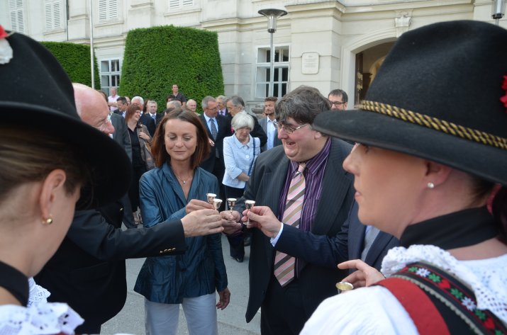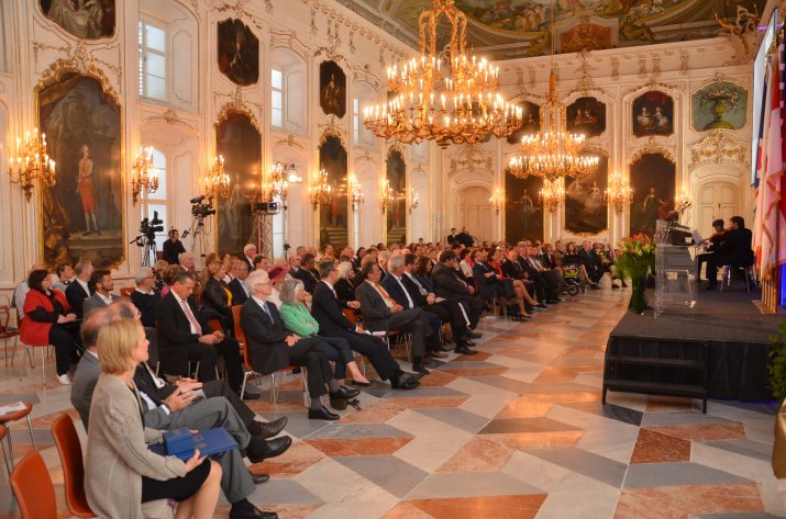 Der Verleihung im Riesensaal der kaiserlichen Hofburg ging der landesübliche Empfang voraus, zu dem die Ehrenkompanie Amras aufmarschiert war. Unter den zahlreichen Ehrengästen befanden sich neben Mitgliedern der Tiroler Landesregierung, Stadtrat Mag. Gerhard Fritz, StR Ernst Pechlaner und VertreterInnen des Gemeinderates auch RepräsentantInnen des diplomatischen Korps, zahlreiche Delegierte des Europarates, VertreterInnen des Europäischen Parlamentes, der Behörden und der Universität sowie EhrenzeichenträgerInnen.