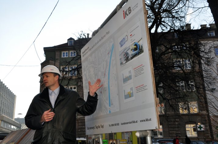 Der unterirdische Kanalvortrieb, der seit Jänner 2011 im Zuge der Kanaloffensive 2020 der Innsbrucker Kommunalbetriebe AG realisiert wird, ist mittlerweile am Bozner Platz angelangt. Um sich von den Bauarbeiten tief unter der Oberfläche selbst ein Bild zu machen, besichtigte Bürgermeisterin Mag.a Christine Oppitz-Plörer mit zahlreichen Mitgliedern des Innsbrucker Gemeinderates am 24. November die Baustelle am Bozner Platz.