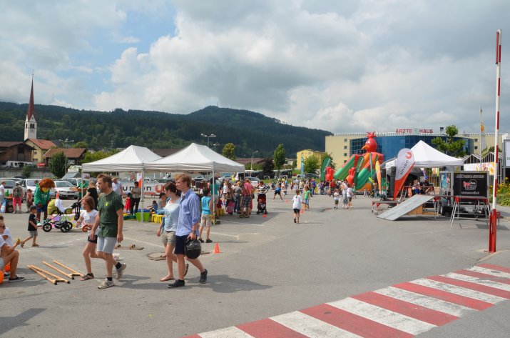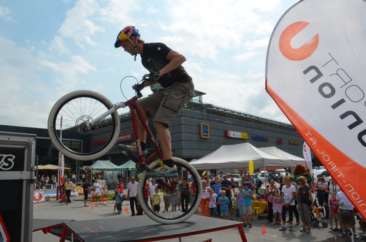 Bereits zum 22. Mal lud das Einkaufszentrum DEZ unter der Leitung von Center-Manager Helmut Larch zur Eröffnung des Kinderferienzuges. Heuer wurde das bunte Kinderfest gemeinsam mit der Sportunion organisiert – Bewegung stand dementsprechend bei vielen Stationen im Vordergrund. Neben einer Hüpfburg konnten die Kinder ihr Talent beim Slacklining zeigen, Speed-Tennis spielen oder an einer Mal-Station ihrer Kreativität freien Lauf lassen. Eine gesunde Jause sorgte für das leibliche Wohl. Einen besonderen Höhepunkt stellte die rasante Mountainbike-Show von Trial-Profi Tom Öhler dar.