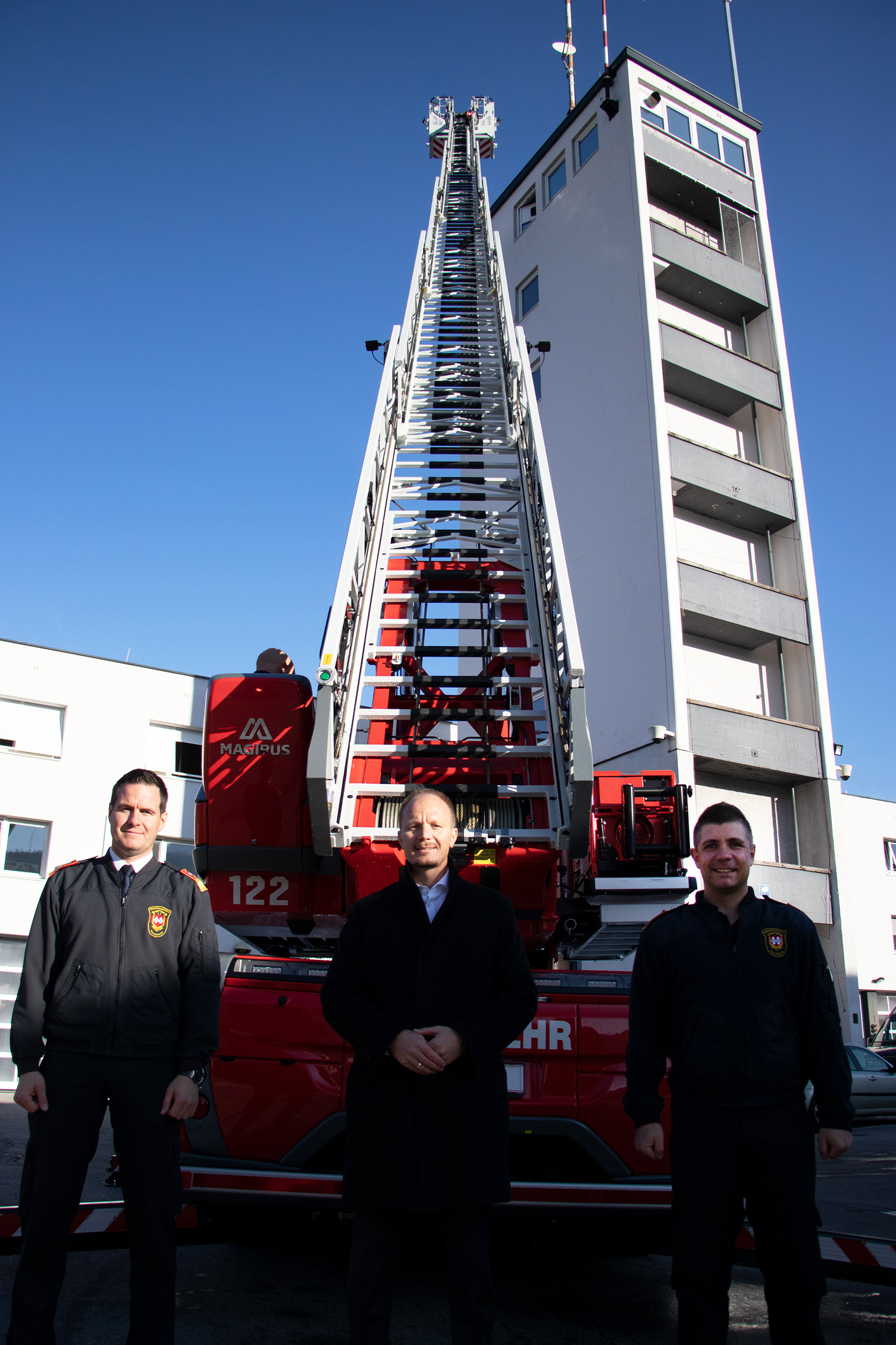 Über die Anschaffung des modernsten Hubrettungsfahrzeugs in Tirol freut sich die Berufsfeuerwehr Innsbruck. Vor Kurzem konnten Vizebürgermeister Ing. Mag. Johannes Anzengruber und Branddirektor Mag. (FH) Helmut Hager eine neue Drehleiter auf der Hauptfeuerwache in Pradl in Empfang nehmen.