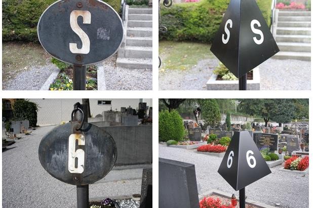 Im Zuge der Arbeiten wurden am Ost- und Westfriedhof jeweils 92 Tafeln, am Friedhof Hötting 13 Tafeln und am Friedhof Mühlau 48 Tafeln ausgetauscht. Die alten waren großteils schon korrodiert und bestanden lediglich aus einem flachen, ovalen kleineren Schild. Die neuen hingegen sind dreiseitig nummeriert und mit wesentlich größeren, auch von der Weite leicht erkennbaren weißen Ziffern beschriftet.