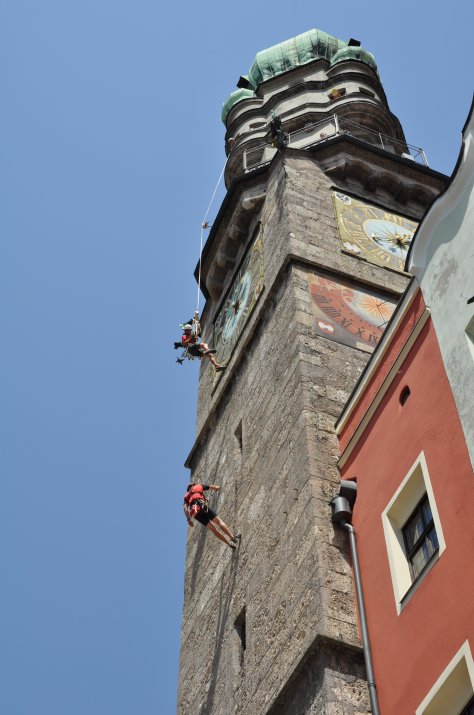 Geladen hatte „Peterle“, der – so wissen alle Kinder – vom Stadtturm aus über Innsbrucks Kinder wacht und sich besonders um deren Sicherheit sorgt. In der Herzog-Friedrich-Straße gaben Peterles Freunde von Polizei, Berufsfeuerwehr, Rotem Kreuz und Bergrettung kindgerecht wichtige Sicherheitstipps. Auch in der Quizrallye, der geheimen Grotte im Stadtturm und bei der Mal- & Spielstation erfuhren die Kinder auf unterhaltsame Art viel Lehrreiches zum Thema Sicherheit im Sommer.