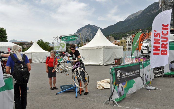 An jedem ersten Freitag im Monat (April bis Juli sowie September und Oktober) führen SpezialistInnen der Bikerei im Rahmen der Radwerkstatt kostenlos kleinere Reparaturen durch und rücken somit wird die Verkehrssicherheit in den Mittelpunkt. Das besondere Serviceangebot bietet eine kostenlose und niederschwellige Möglichkeit, das Bike auf Fahrtauglichkeit überprüfen zu lassen. Kleinere Mängel werden direkt vor Ort behoben. Gröbere Fehler müssen in einer Fachwerkstätte gerichtet werden. Organisiert wird das Angebot von der Stadt Innsbruck und der Bikerei.
