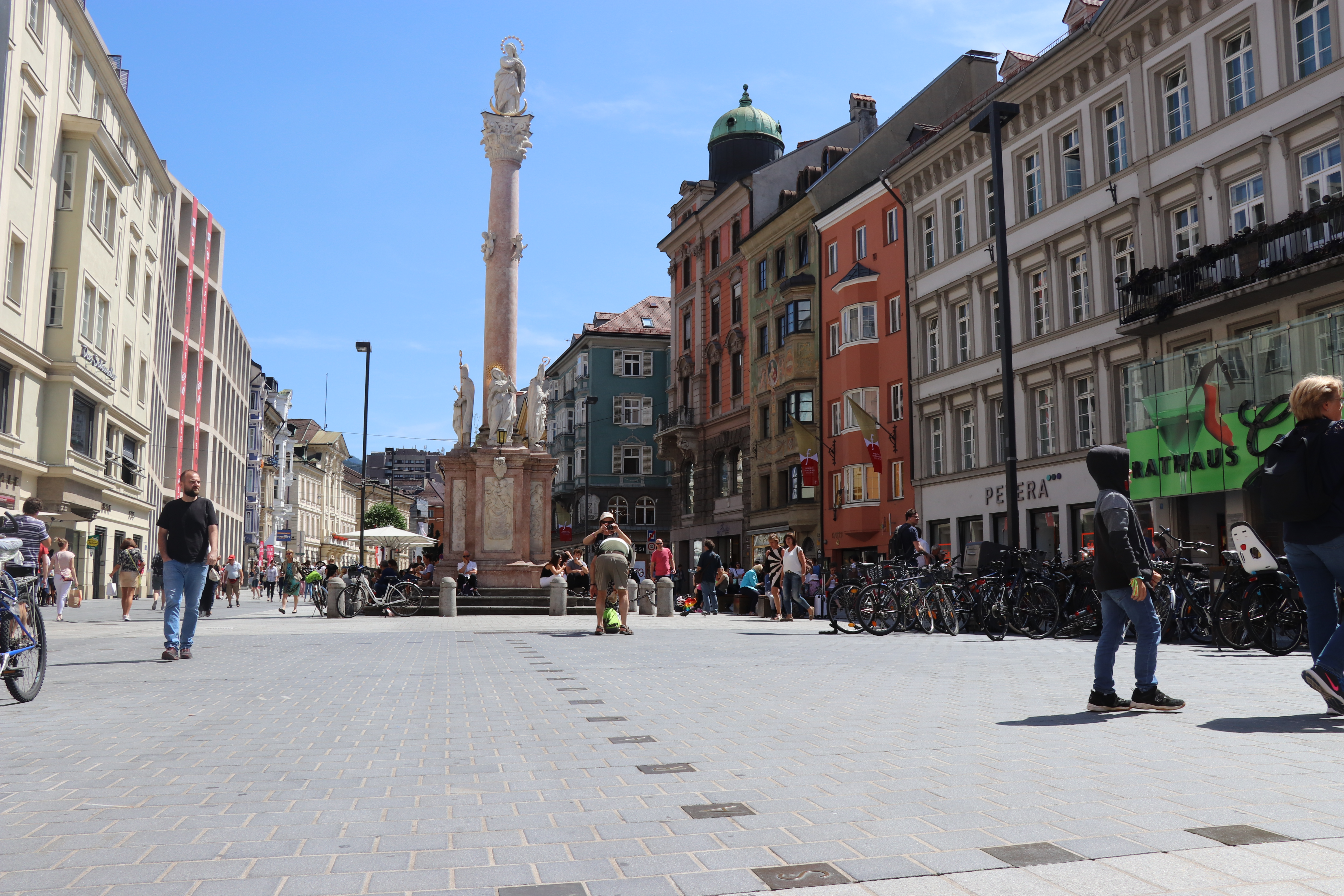Der Platz rund um die Annasäule in der Maria-Theresien-Straße ist sowohl für InnsbruckerInnen als auch Gäste ein beliebter Aufenthaltsort in der Innenstadt.