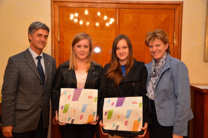 „Es ist immer schön, jemanden aus unserer Partnerstadt kennen zu lernen“, hieß Bürgermeisterin Oppitz-Plörer Magdalena Gaidzik und Katarzyna Sadowska in der Tiroler Landeshauptstadt herzlich willkommen: „Ich wünsche euch viel Freude und eine schöne Zeit in Innsbruck.“ Zur Begrüßung übergab sie den beiden Schülerinnen ein Willkommensgeschenk.