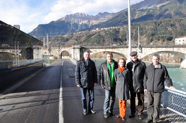 Die für Tiefbau und Umwelt zuständige Vizebürgermeisterin Mag.a Sonja Pitscheider und Grünraumstadtrat Mag. Gerhard Fritz stellten am 26. November gemeinsam mit Ing. Gerhard Dendl (Inn-Sill-Koordinator) sowie Vertretern der IKB, der ÖBB sowie der beteiligten städtischen Dienststellen vor Ort die durchgeführten Maßnahmen vor.