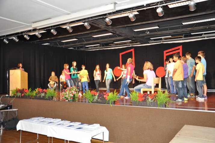 Als Anerkennung ihrer Leistungen erhielten die SchülerInnen Kinogutscheine und Freikarten fürs Tivoli-Schwimmbad. Die Feier wurde durch musikalische und tänzerische Einlagen des Schulorchesters, des Auswahlchores und einer dritten Klasse der Neuen Mittelschule Olympisches Dorf umrahmt.