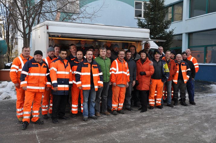 Montag, 9.00 Uhr in der Innsbrucker Bachlechnerstraße 27: Die 46 Mitarbeiter der Verkehrseinrichtungen und des Straßenbauhofs West konnten sich über ein zweites, ganz besonderes Frühstück freuen: