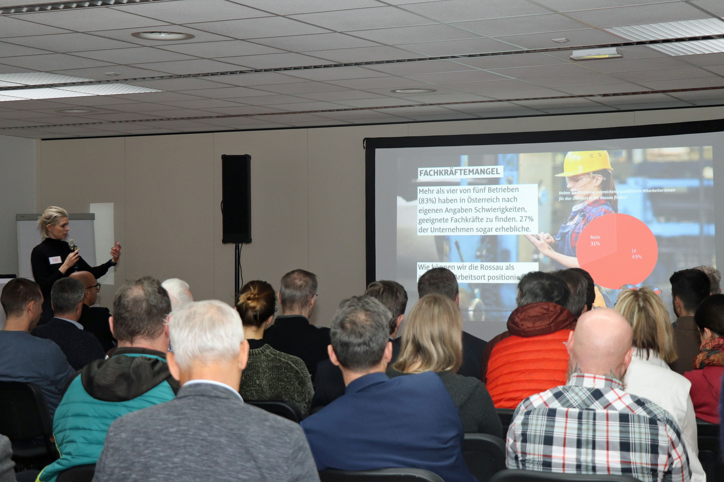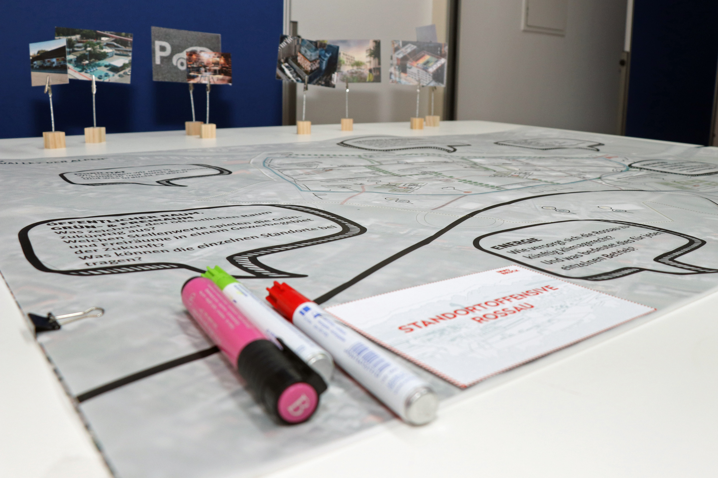 UnternehmerInnen, Beschäftigten, städtischen MitarbeiterInnen und allen Interessierten wurde beim Stakeholderworkshop Gelegenheit geboten, eigene Vorstellungen und Zukunftsszenarien aktiv einzubringen. Das mit der Planung und Prozessbegleitung der Rossau beauftragte Büro Raumposition informierte in einem Impulsvortrag über Ausgangssituation sowie Herausforderungen einer Weiterentwicklung des Standorts. Anschließend erarbeiteten die TeilnehmerInnen in vier Gruppen standortrelevante Themen wie Mobilität, Energie, Öffentlicher Raum und Städtebau.