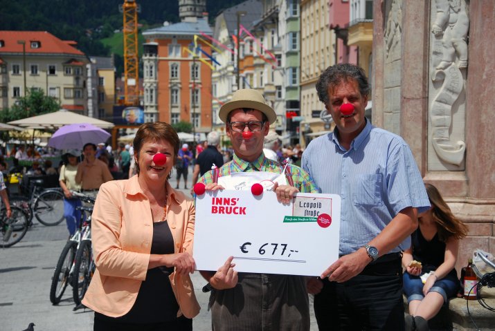 „Die Arbeit der Clowndoktoren macht vor allem Kindern den Aufenthalt in Krankenhäusern um vieles erträglicher – nicht umsonst sagt man, dass Lachen die beste Medizin sei“, betonte Stadträtin Dr. Marie-Luise Pokorny-Reitter bei der Scheckübergabe an die „ROTE NASEN Clowndoctors“ am 21. Juni. „Aus diesem Grund freut es mich sehr, dass wir mit dem Verkauf alter Straßentafeln ein so wichtiges und engagiertes Projekt unterstützen können.“