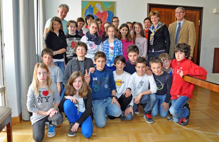 „Es freut mich sehr, eine so große Runde hier im Stadtsenatssitzungszimmer begrüßen zu dürfen“, empfing Bürgermeisterin Oppitz-Plörer ihre jungen Gäste. Bei einer kleinen Erfrischung hatten die SchülerInnen Gelegenheit, ihre Fragen zu stellen. So wollten sie etwa wissen, ob die Arbeit einer Bürgermeisterin schwierig ist, ob ein Stadtoberhaupt überhaupt Freizeit hat und wie der Arbeitstag einer Bürgermeisterin aussieht. Schon im Voraus wurden sie von Referent Dr. Peter Brühwasser (Büro des Magistratsdirektors) durch das Rathaus geführt und bekamen einen kurzen Überblick über die Verwaltung der Stadt.