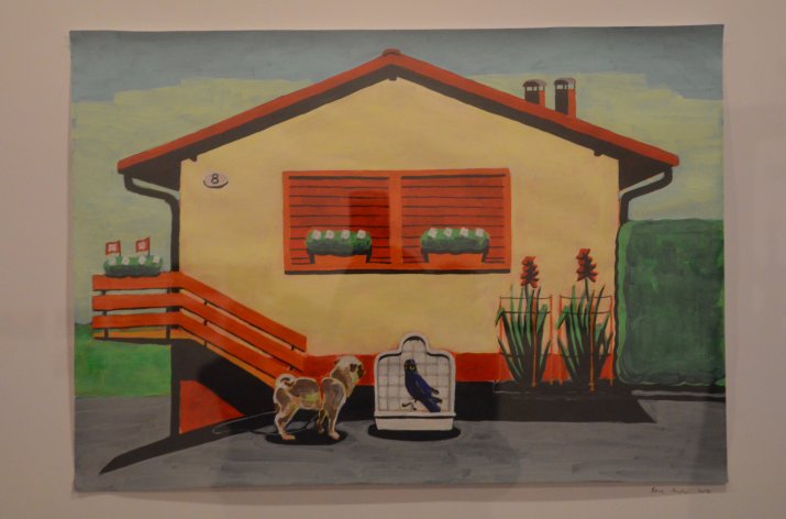 In der Galerie im Andechshof findet eine Zusammenführung dieser Fragmente statt: Gezeigt werden einerseits Illustrationen, die aufgrund ihrer intensiven Kolorierung übertrieben und künstlich wirken und als überspitzte Darstellung von real Vorgefundenem gelesen werden können. Andererseits verweisen Fotos auf die konstruierte Natur unserer Welt, indem „gefühlte unfreie Räume“ sichtbar gemacht werden. Zu guter letzt wird ein Vogel zum Leben erweckt und aus der Gefangenschaft seines künstlichen (Da-)Seins befreit, denn… „er fliegt doch“.