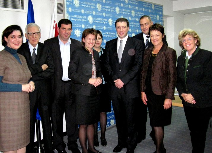 Begleitet wurden die beiden Politikerinnen von einer kleinen Delegation, bestehend aus Mag.a Barbara Kobler (Büro der Bürgermeisterin, zuständig für internationale Angelegenheiten), Dr. Karin Bauer (Diözese Innsbruck) und Dr. Paul Kummer (ehemaliger Stadtrat von Innsbruck). Dr. Kummer wurde die Ehre zuteil, im Rahmen der Feierlichkeiten in Tiflis die Ehrenbürgerschaft der Stadt verliehen zu bekommen. Sein intensiver Einsatz für die seit 1982 bestehende Städtepartnerschaft schuf das Fundament für eine enge Beziehung, die nun wieder verstärkt gepflegt werden soll.