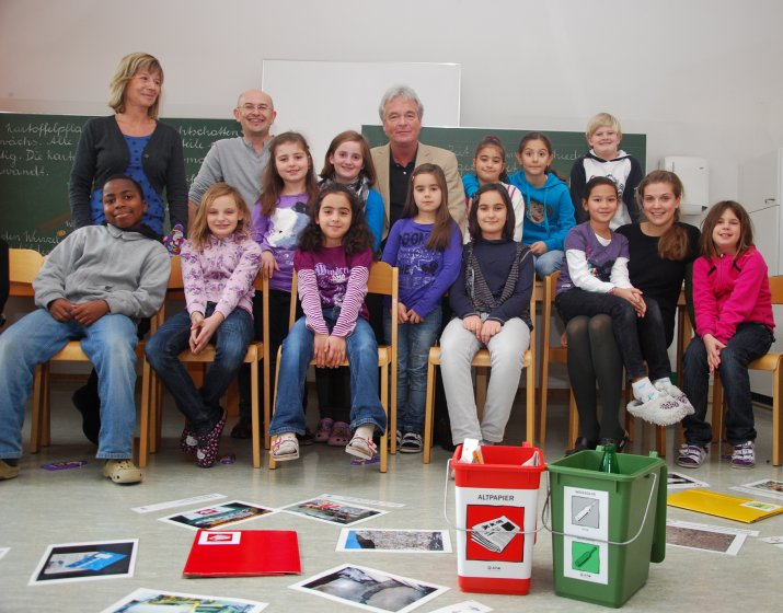 Die Umweltpädagogin Mag. Lisa Walder informierte die Kinder über die Materialien Glas, Papier, Verbundstoffe und Bioabfall und deren ordnungsgemäße Entsorgung. Die SchülerInnen beantworteten Fragen wie „Woher kommt das Papier?“, „Wie wird Altpapier richtig gesammelt?“ und „Was wird aus Altpapier hergestellt?“ sowie zu den Themen Mülltrennung und -vermeidung, Recycling und Kompostierung.