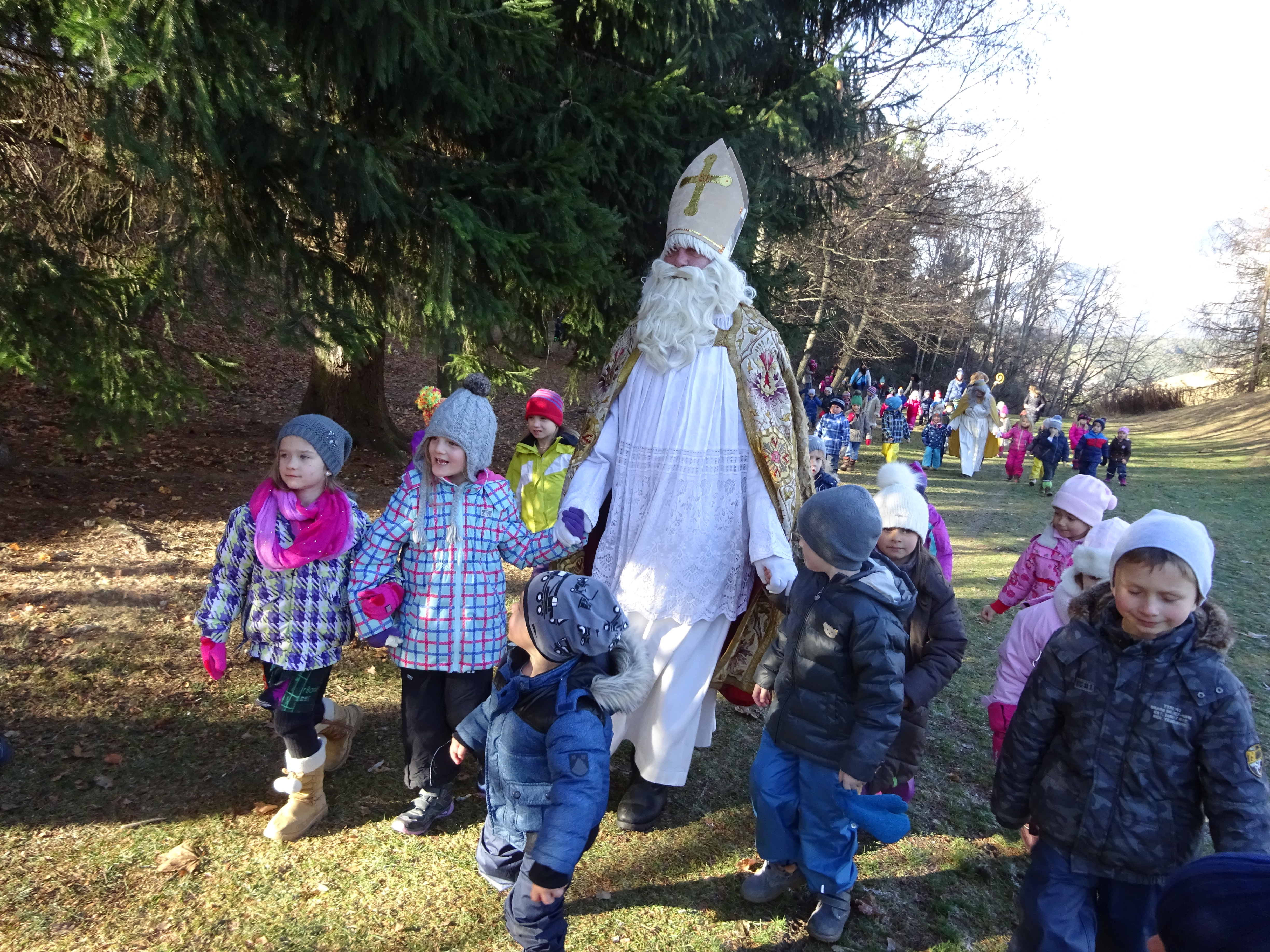 Am Montag, den 05. Dezember, ist es wieder soweit: Der Heilige Nikolaus zieht ein. Von der Pfarrkirche St. Nikolaus durch die Innstraße, über die Innbrücke bis zum Domplatz führt der Weg des Bischofs. Begleitet wird er von vielen kleinen Engeln und Hirten. Diese kommen aus der Volksschule St. Nikolaus. Die Volksschule ist gemeinsam mit dem Jugendrotkreuz für die Organisation des Umzugs zuständig. Bereits Wochen zuvor wird – wie jedes Jahr – fleißig vorbereitet. Auch die Musikmittelschule Innsbruck stimmt sich im Olympischen Dorf traditionell auf Weihnachten ein: Am 16. Dezember findet das jährliche Adventkonzert zugunsten von „Kindern eine Chance“ statt. Dabei gestalten die beiden Schulchöre, das Schulorchester sowie diverse Instrumental- und Vokalgruppen ein stimmungsvolles Programm. „Die Beispiele aus St. Nikolaus/Mariahilf und dem Olympischen Dorf sind nur zwei von vielen. Der Vorweihnachtszeit wird in den städtischen Schulen, Kindergärten und anderen Bildungseinrichtungen große Bedeutung beigemessen. Es ist eine Zeit, in der zwar viele Veranstaltungen und Aufführungen sind, trotzdem wird den Kindern Platz für Ruhe und Besinnung gegeben“, erläutert der für Bildung zuständige Stadtrat Ernst Pechlaner. Auch im Kindergarten Igls ist der Tag, an dem der Heilige Nikolaus kommt, etwas ganz Besonderes: Traditionell hängen die Kinder Meisenknödel im nahegelegenen Gsetzbichl-Park auf. Dort treffen sie auf den Nikolaus und singen ihm Lieder vor. Anschließend begleitet er sie dann wieder zurück zum Kindergarten, wo die Nikolausfeier stattfindet. Auch sonst lässt das dortige Adventsprogramm keine Wünsche offen: Die älteren Kinder bauen Krippen, die jüngeren basteln Weihnachtsschmuck aus Ton. Das Adventkranzbinden zu Beginn der besinnlichen Zeit ist ebenfalls nicht mehr wegzudenken. Fixpunkt in Igls ist sowohl für die Schulkinder als auch jene im Kindergarten die „Igler Bergweihnacht“.