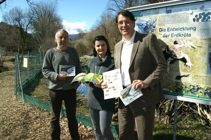 „Eine Insel der Natur im besiedelten Raum ist nicht selbstverständlich. Hier im Westen Innsbrucks leben zahlreiche geschützte Tiere wie Ringelnattern, Grasfrösche, Libellen, Erdkröten oder die vom Aussterben bedrohte Wechselkröte, die mit dem Teich eine neue Heimat gefunden haben“, erläuterte der Biologe Dr. Rudolf Hofer vom Verein „Dein Nachbar Lohbach“.