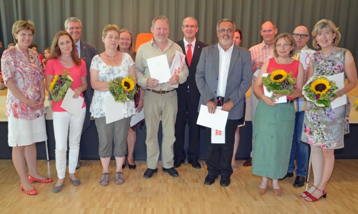 Im Festsaal der Volksschule Reichenau kamen am 18. Juni 50 Lehrkräfte zusammen, die für ihre Verdienste ausgezeichnet wurden. In Anwesenheit von Bezirksschulinspektor Wolfgang Haslwanter, Amtsdirektor des Bezirksschulrates Innsbruck Stadt Mag. Ferdinand Neu, Dr. Karin Zangerl (Amtsvorständin Familie, Bildung und Gesellschaft), Mag. Christian Biendl (Referent Bezirksschulangelegenheiten) sowie zahlreichen DirektorInnen überreichte Bürgermeisterin Mag.a Christine Oppitz-Plörer den verdienten PädagogInnen ein Dekret.
