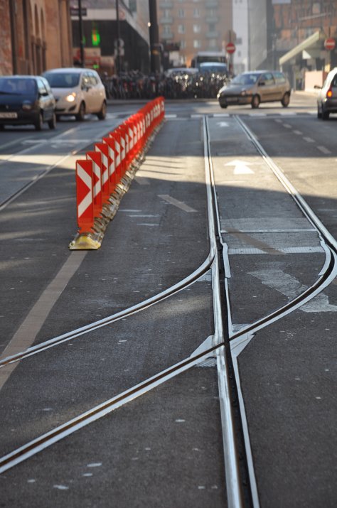 Diese Verkehrsregelung wurde von den VerkehrsteilnehmerInnen häufig nicht eingehalten und es kam zu Behinderungen der öffentlichen Verkehrsmittel und auch zu gefährlichen Situationen durch Bremsungen. Um dies zu vermeiden, wurden nun die Richtungsfahrbahnen mittels Leitschwellen baulich getrennt.