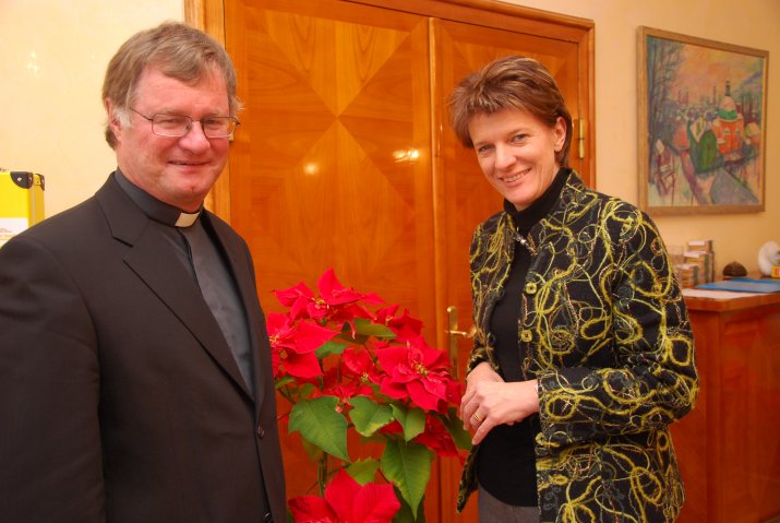 Am 16. Dezember stattete Diözesanbischof Dr. Manfred Scheuer Bürgermeisterin Mag.a Christine Oppitz-Plörer einen vorweihnachtlichen Besuch im Rathaus ab, um auch offiziell die Weihnachtsgrüße vom Domplatz der Stadtgemeinde zu überbringen.