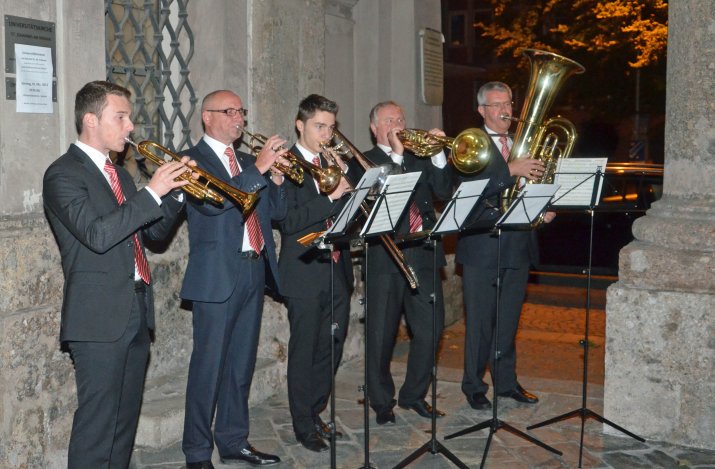Musikalisch umrahmt vom Bläserensemble Amras wurde im Anschluss an den Gottesdienst die Gedenktafel übergeben. Landtagspräsident van Staa bedankte sich bei Initiator Monsignore Hippler und beim Gemeinderat der Stadt Innsbruck für die Entscheidung der Platzbenennung: „Mein Dank gilt der Stadt Innsbruck für diese Würdigung unseres unvergessenen Bischofs Reinhold Stecher.“