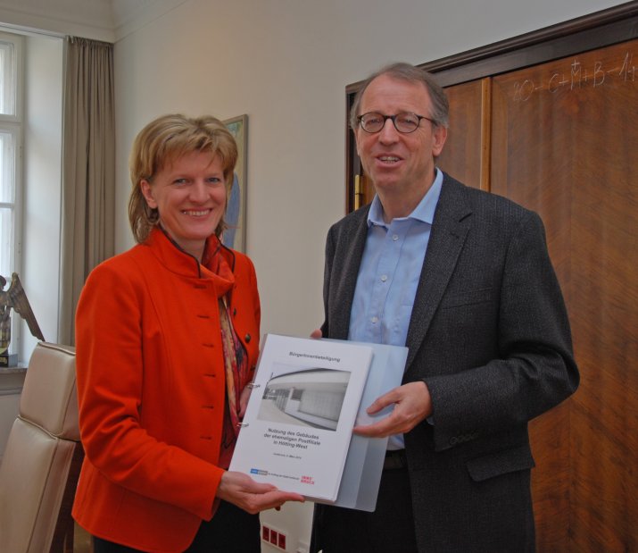 An Ideen aus der Bevölkerung mangelt es nicht, was die neue Nutzung der ehemaligen Postfiliale Hötting-West angeht: Nun ist der im September 2013 gestartete Prozess der BürgerInnenbeteiligung zur Ideenfindung abgeschlossen. Am 6. März legte Dr. Anton Hütter (Firma hütter&partner) Bürgermeisterin Mag.a Christine Oppitz-Plörer die Ergebnisse als Schlussbericht vor.